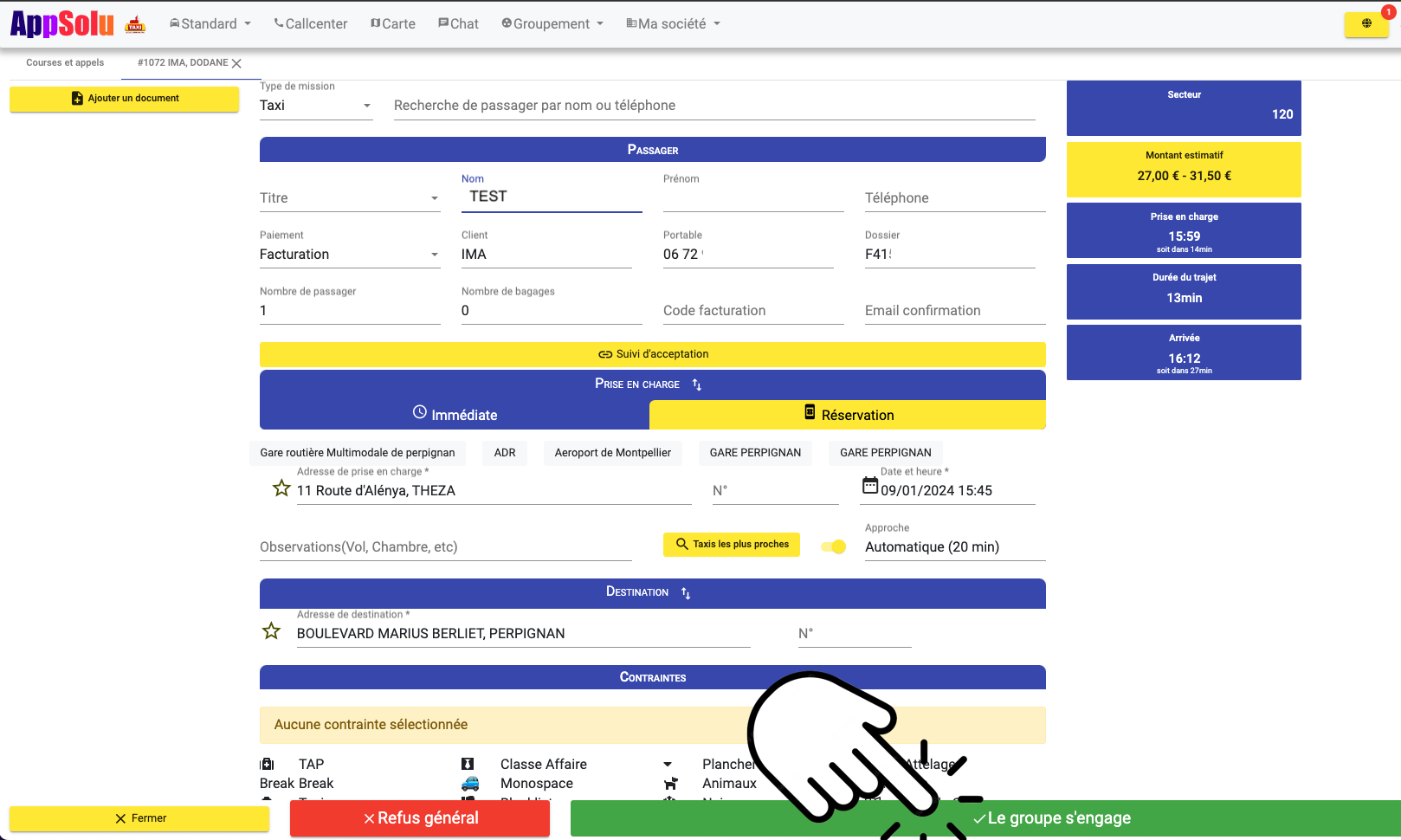 4 - Le standard doit cliquer sur LE GROUPE S'ENGAGE