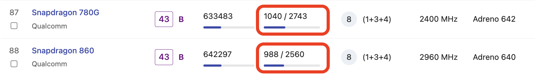 - 1000 / 2300 (GeekBench 5)